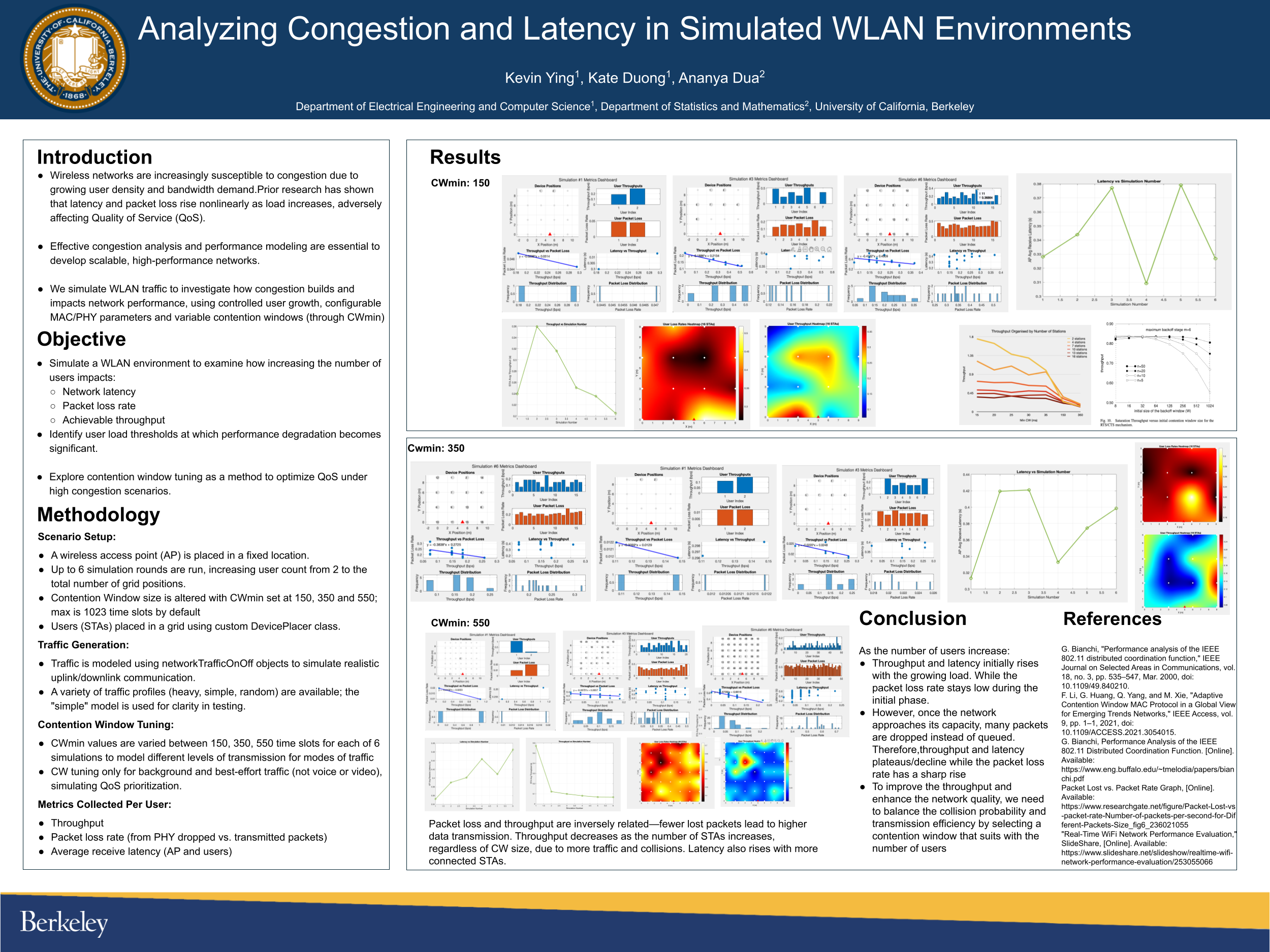 Proposed CSMA/CA tuning strategies to stabilize QoS under congestion.